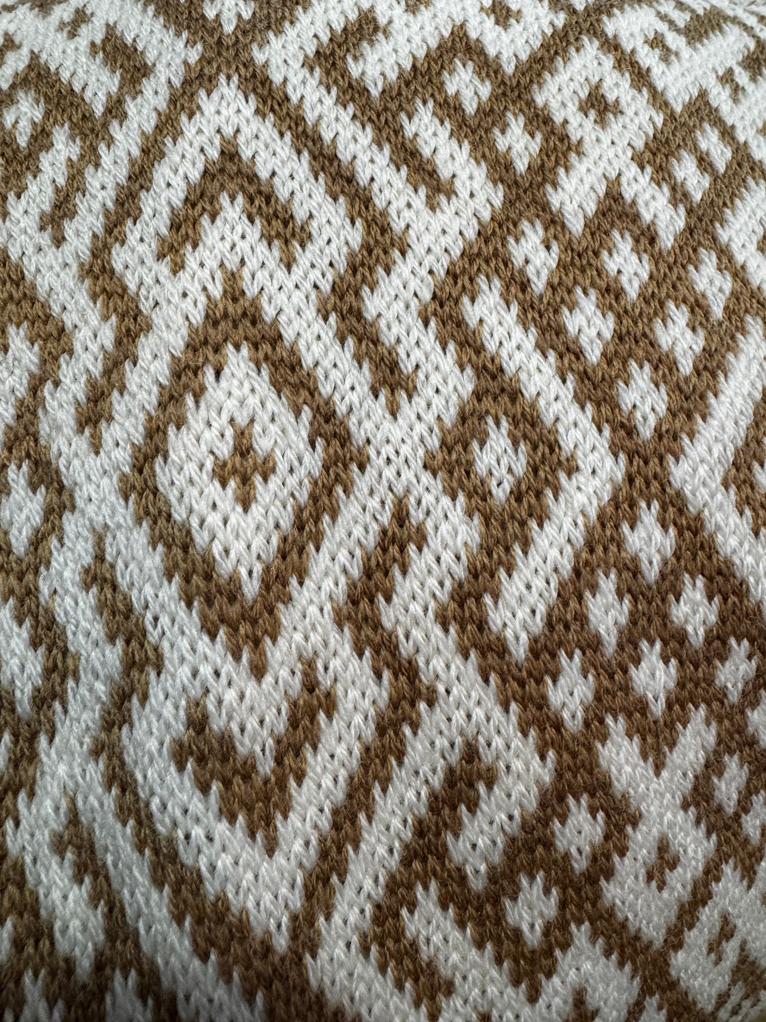This knitted hat scarf is created by Amber Sisters using 100% merino wool and inspired by the traditional Latvian Lielvārde motif. Designed as a versatile 2-in-1 accessory, it can be worn both as a warm hat and as a cozy scarf, combining cultural heritage with practical everyday comfort.